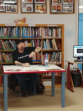 En este encuentro, los cárteles de los alumnos decoraban el espacio, en el que, entre otras actividades, se entrevistaba al autor, se recitaba alguno de sus poemas y se jugaba a una original versión de “verdad o reto”, basada en la obra “La maldición del tigre blanco”. Esta obra ha sido el punto de partida para que el alumnado realice sus propias producciones, que van desde un final alternativo hasta la creación una novela gráfica y un mapa interactivo del mundo. Por supuesto, un año más han sido premiados los mejores booktrailers.