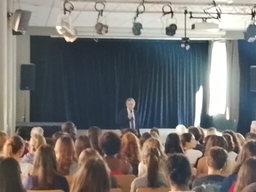Tras unas breves palabras del nuevo Proviseur, el señor Touzanne, tienen lugar los saludos iniciales del señor Manuel Larrotcha Parada y la señora Crampette (principal del Collègue Michelet). Acto seguido toma la palabra el señor Manuel Larrotcha Parada y en su conferencia “La importancia del español y de los españoles en Toulouse” expone las distintas conexiones que se han sucedido con el paso del tiempo entre ambos países.