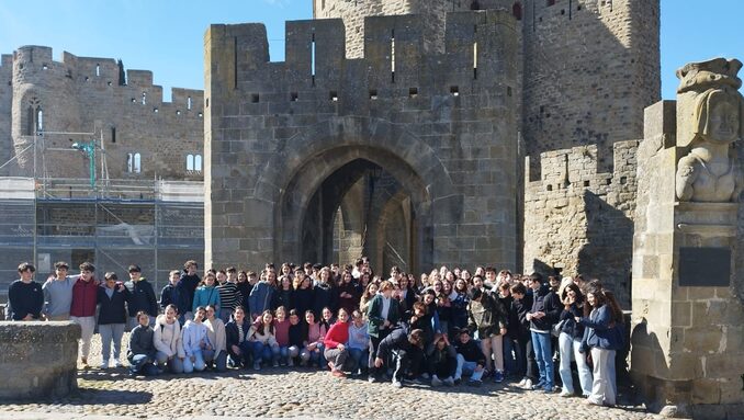 Le mardi 18, ils se sont rendus tous ensemble dans la cité médiévale de Carcassonne où, divisés en groupes, ils ont eu une visite guidée, chaque groupe dans la langue qu'il étudie. A la fin de la visite, ils ont participé à un jeux des pistes dans lequel les équipes étaient composées de membres des deux collèges. Le déjeuner a également été l'occasion de se rencontrer et de faire plus ample connaissance.